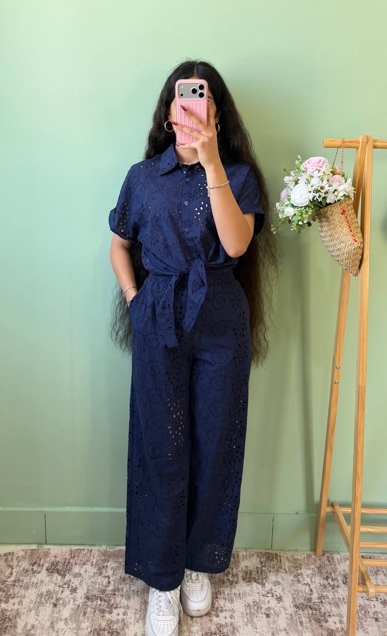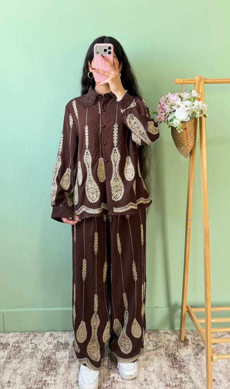 ست شومیز شلوار گره ای خامه دوزی