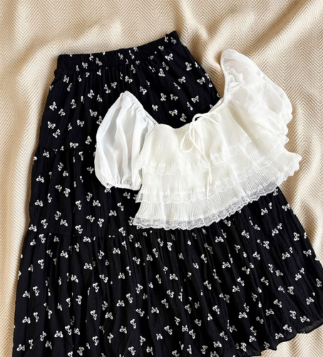 دامن عورسکی شرتکی طبقه ای کمرکش پاپیونی