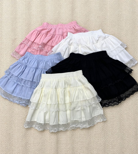 دامن کوتاه عروسکی کمرکش شرتکی طبقه ای پاپیونی