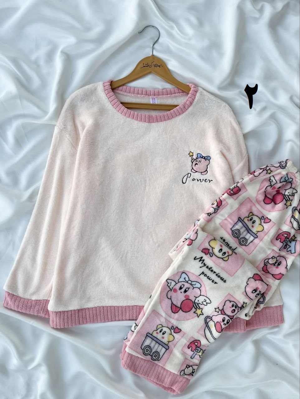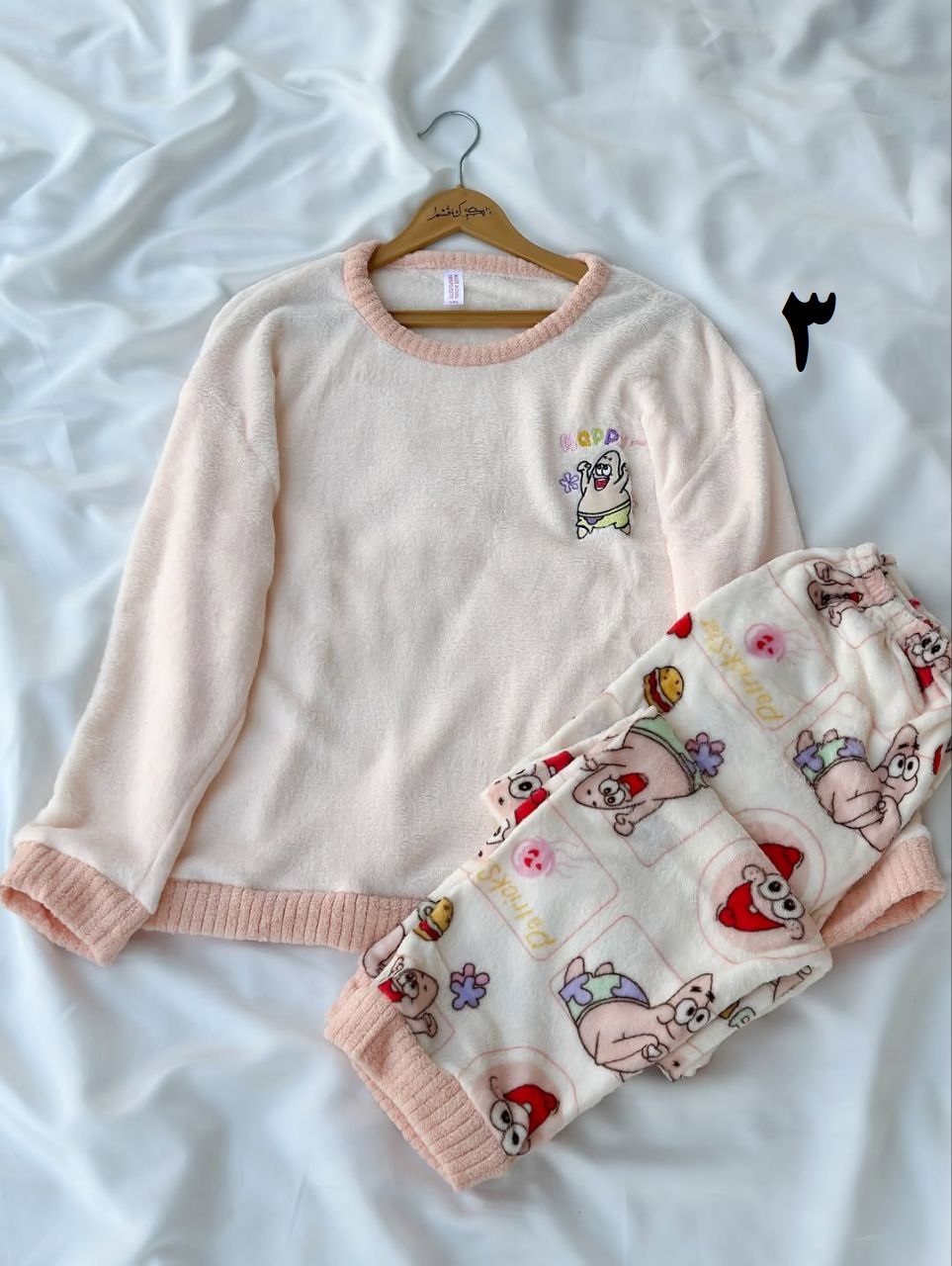 ست دو تکه حوله ای فری سایز مناسب ۳۶ تا ۴۴ وارداتی چین کیفیت عالی عالی بدون پرز دهی گرم و نرم قدبلوز ۶۷ دورسینه ۱۱۸ قدشلوار ۹۴