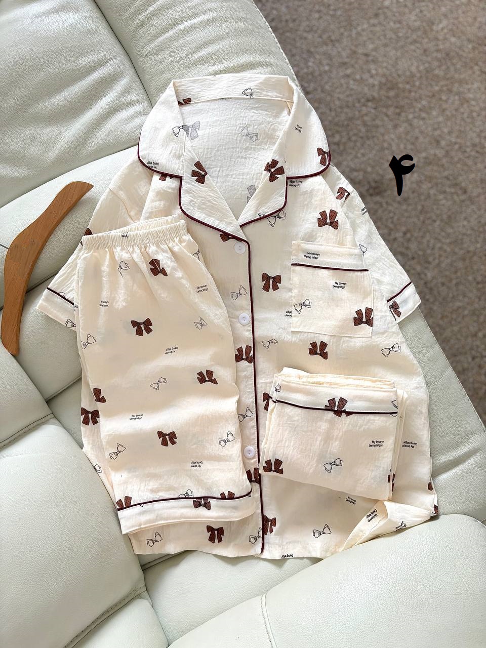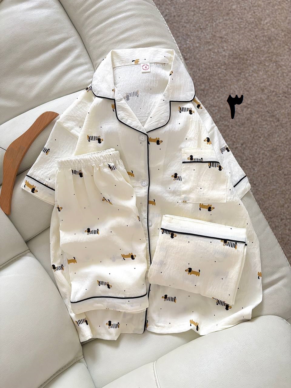 ست سه تیکه راحتی موسلین زنانه پیراهن شورتک شلوار
