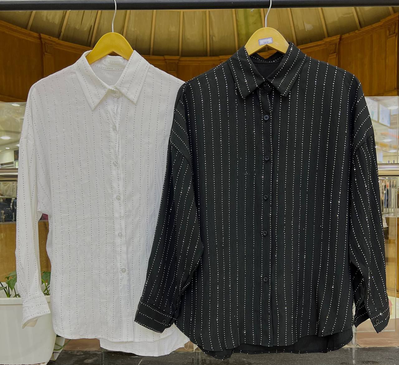 شوميز نگين دار ٢رنگ فري سايز مناسب:٣٨/٤٠/٤٢/٤٤/٤٦ زير بغل:١٢٤سانت قد:٧٤سانت