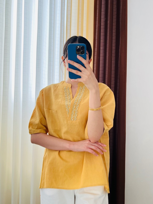 بلوز یقه هفت لینن سایز بزرگ زنانه کد ۱۴۹-۲۳۴۵
