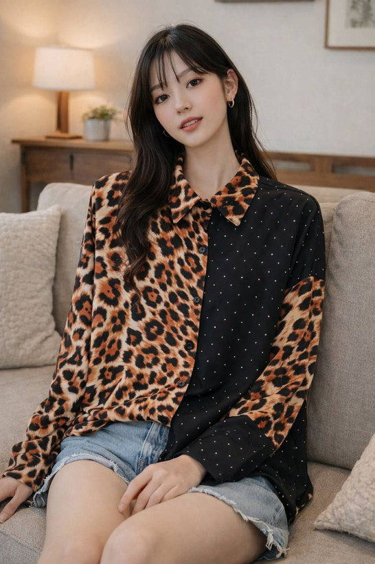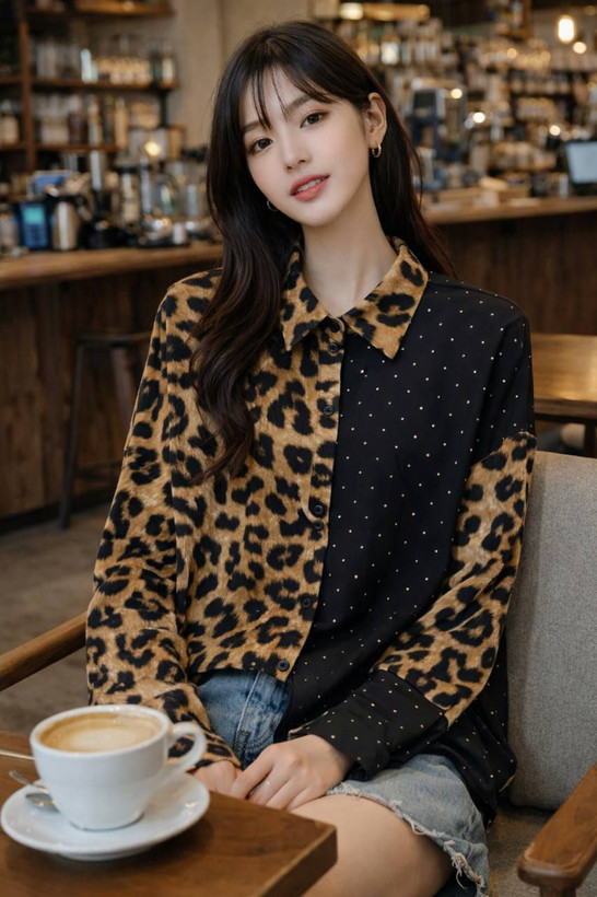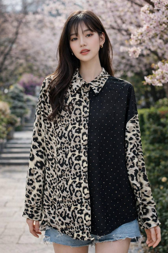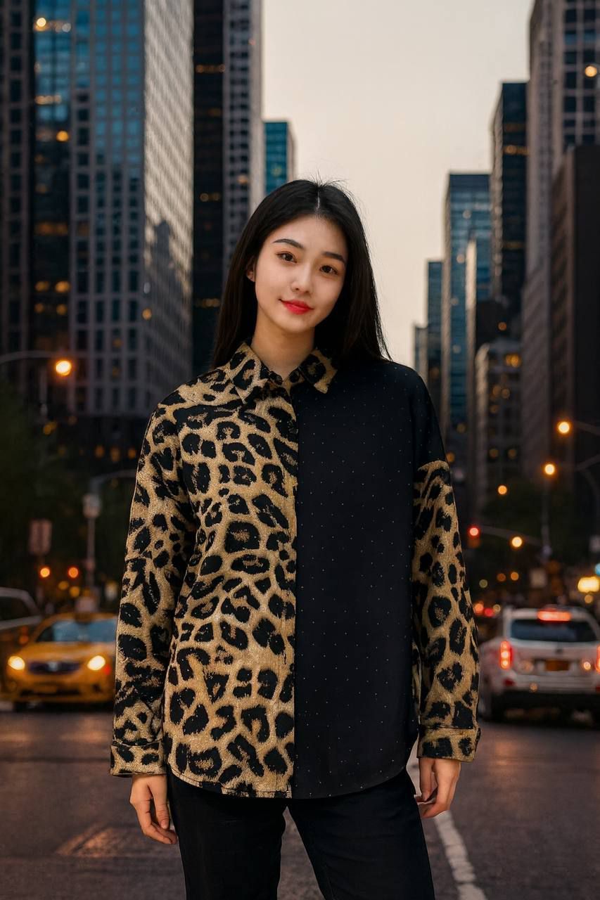 شومیز نگین دار پلنگی کد ۳۴-۴۶۴۳
