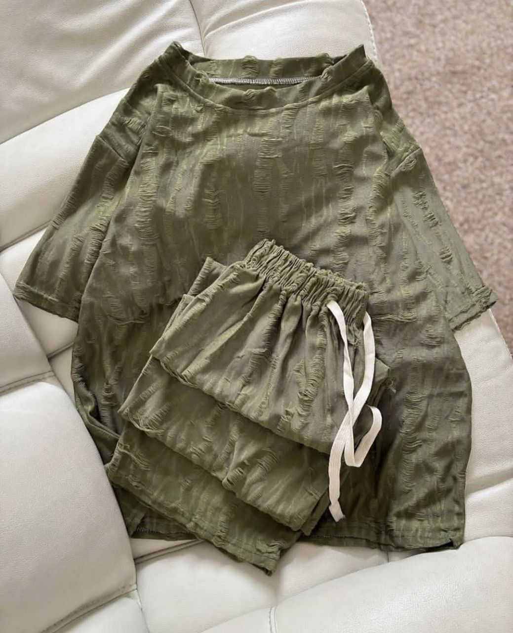 ست بلوز و شلوار نگینی فری سایز قد لباس ۶۱ قد شلوار ۱۰۵ کمرش عادی ۳۲ با کش ۵۰ دورسینه ۱۰۸