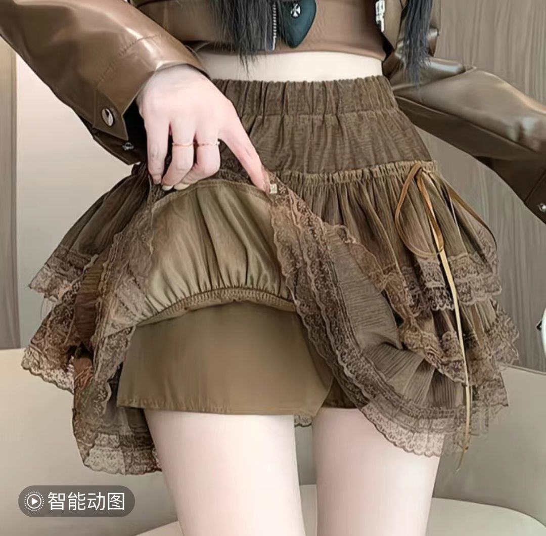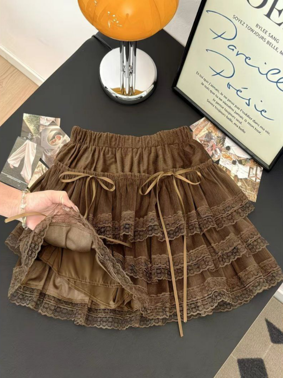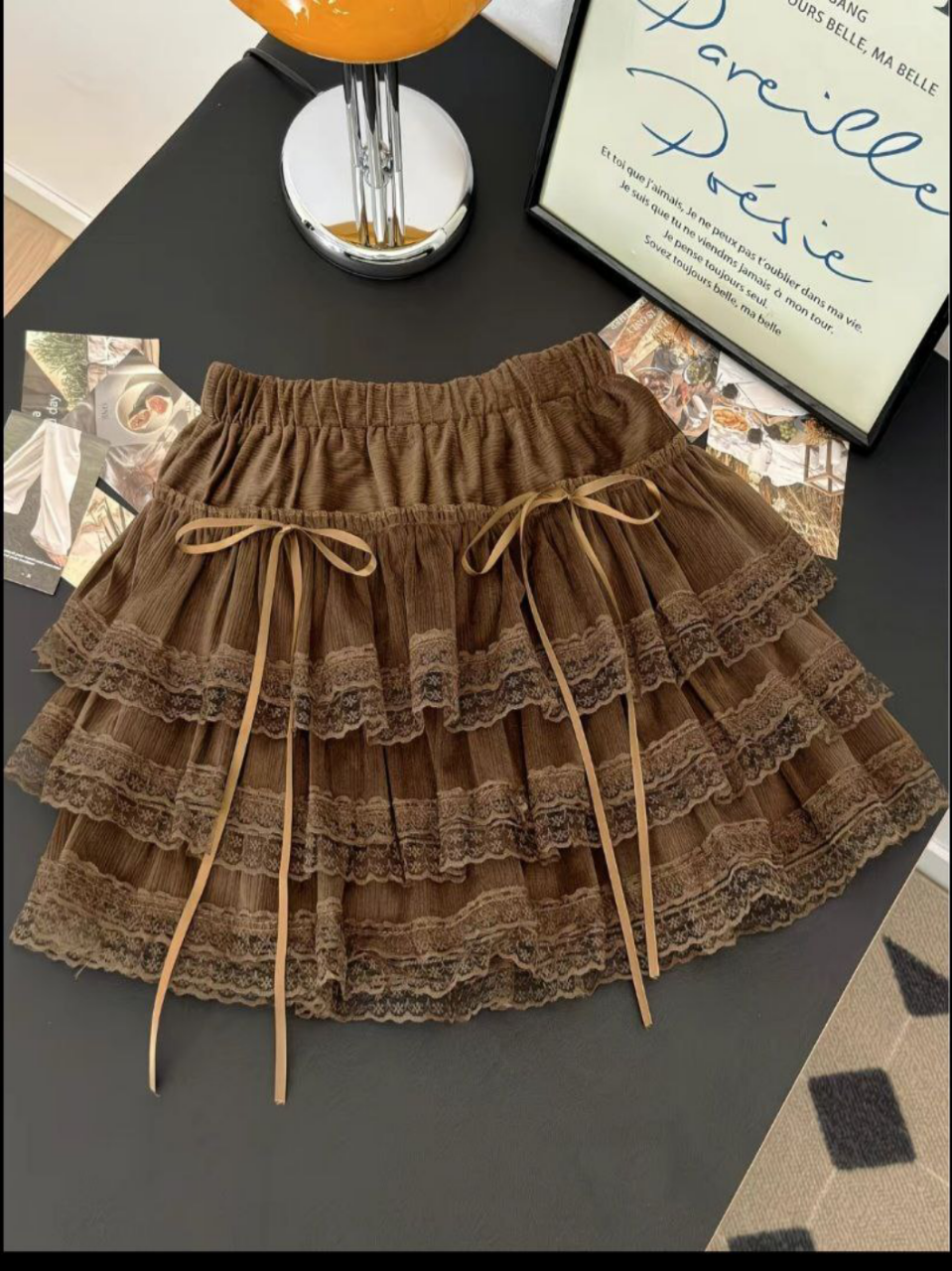 دامن کوتاه شرتکی مخمل توری پاییونی کمرکش
