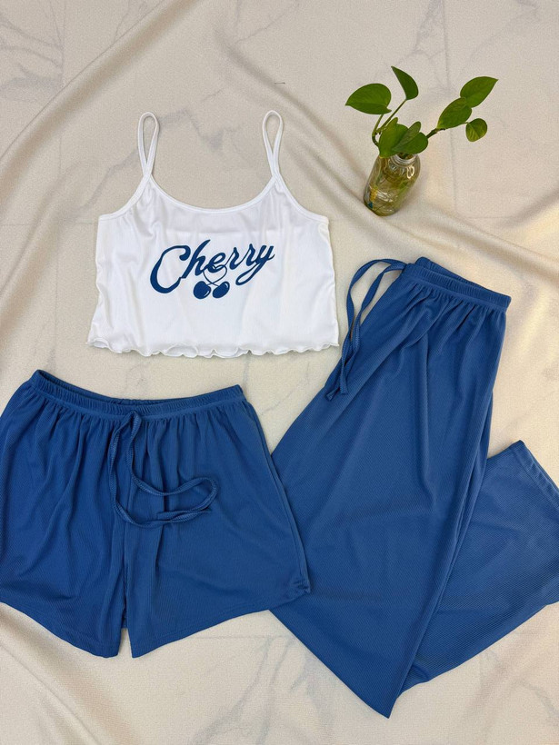 ست سه تیکه زنانه تاپ کراپ شلوار شرتک پارچه کبریتی