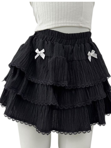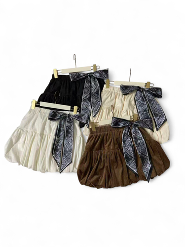دامن کوتاه شرتکی طبقه ای کمر کش پاپیونی
